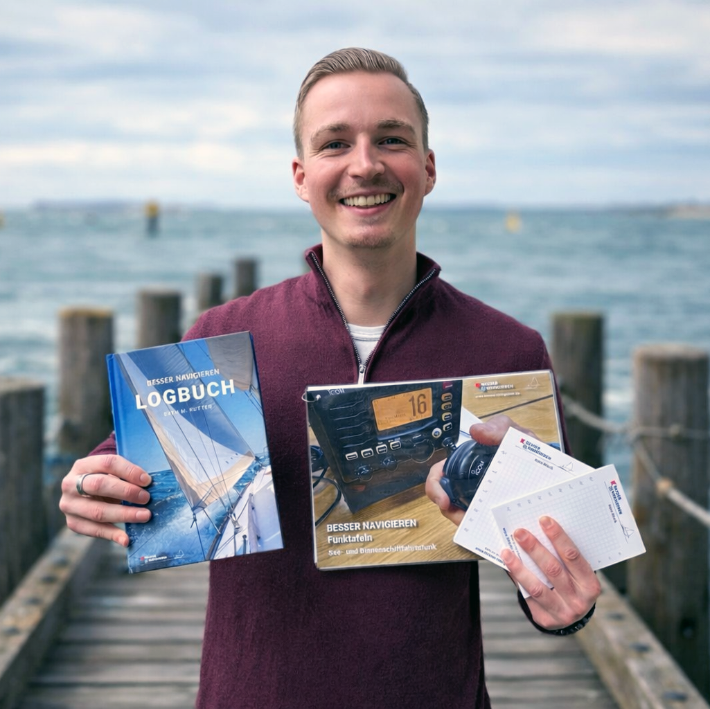 Sichern Sie sich jetzt unser Saisonpaket mit dem beliebten BESSER NAVIGIEREN Logbuch, den pfiffigen BESSER NAVIGIEREN Navi-Blöcken für den Kartentisch und den bewährten BESSER NAVIGIEREN Funktafeln zum einmaligen Sonderpreis. Sie sparen satte 20 % (10,85 Euro) gegenüber dem Einzelkauf.